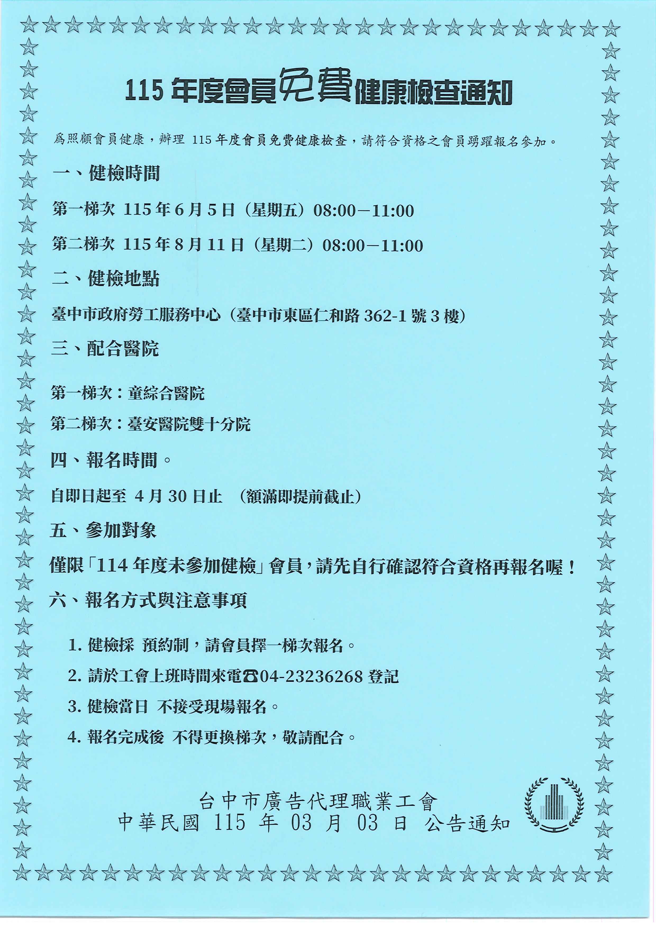 > 📢【115年度會員免費健康檢查】開始報名囉!