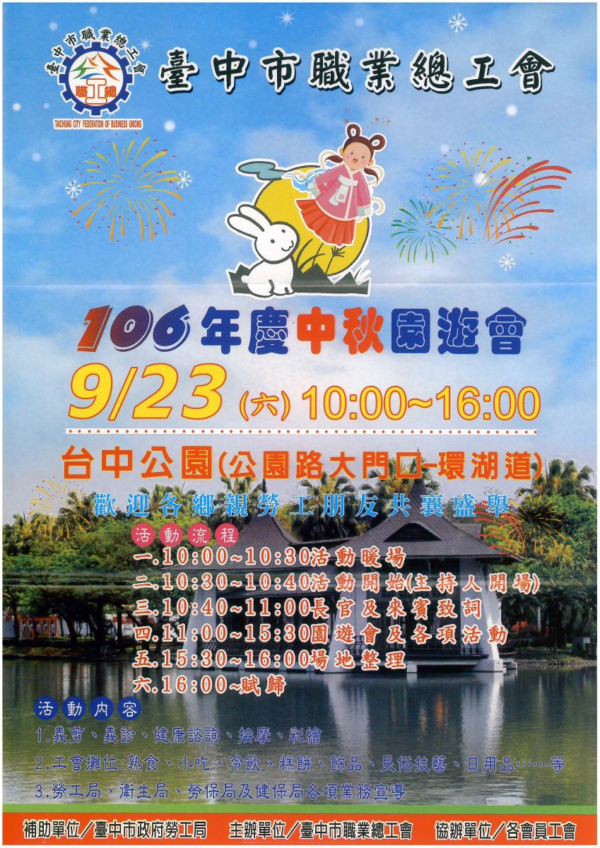 > 轉知~職業總工會於9/23(六)舉辦106年慶中秋園遊會