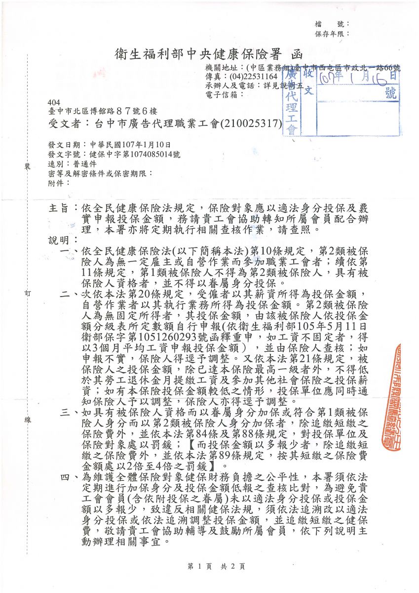 > 依健保法規定,保險對象應以適法身份投保及核實申報投保金額,健保署定期執行查核!!