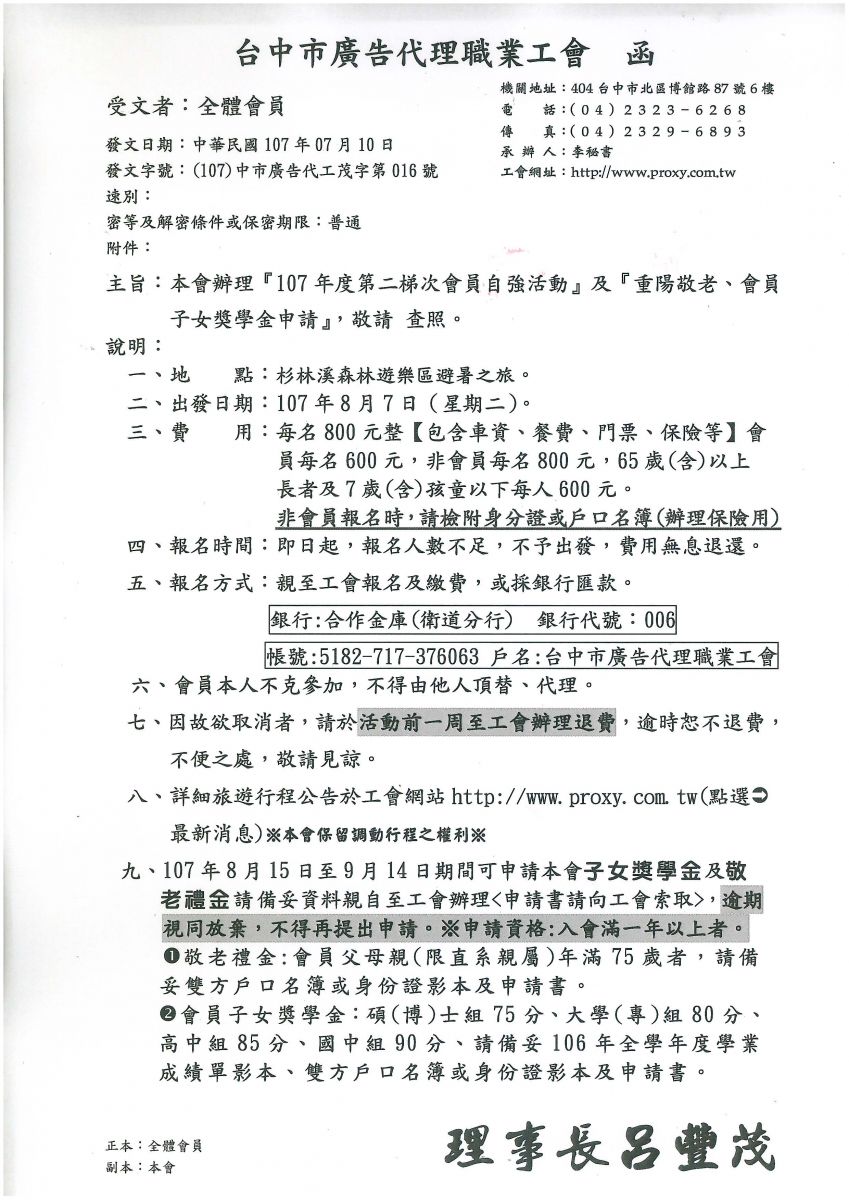 舉辦107年度第二梯次會員自強活動,敬請踴躍報名參加~