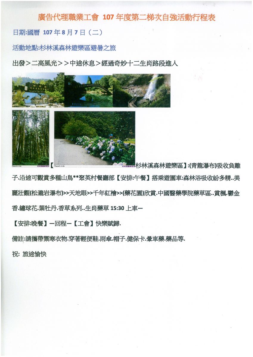 > 舉辦107年度第二梯次會員自強活動,敬請踴躍報名參加~