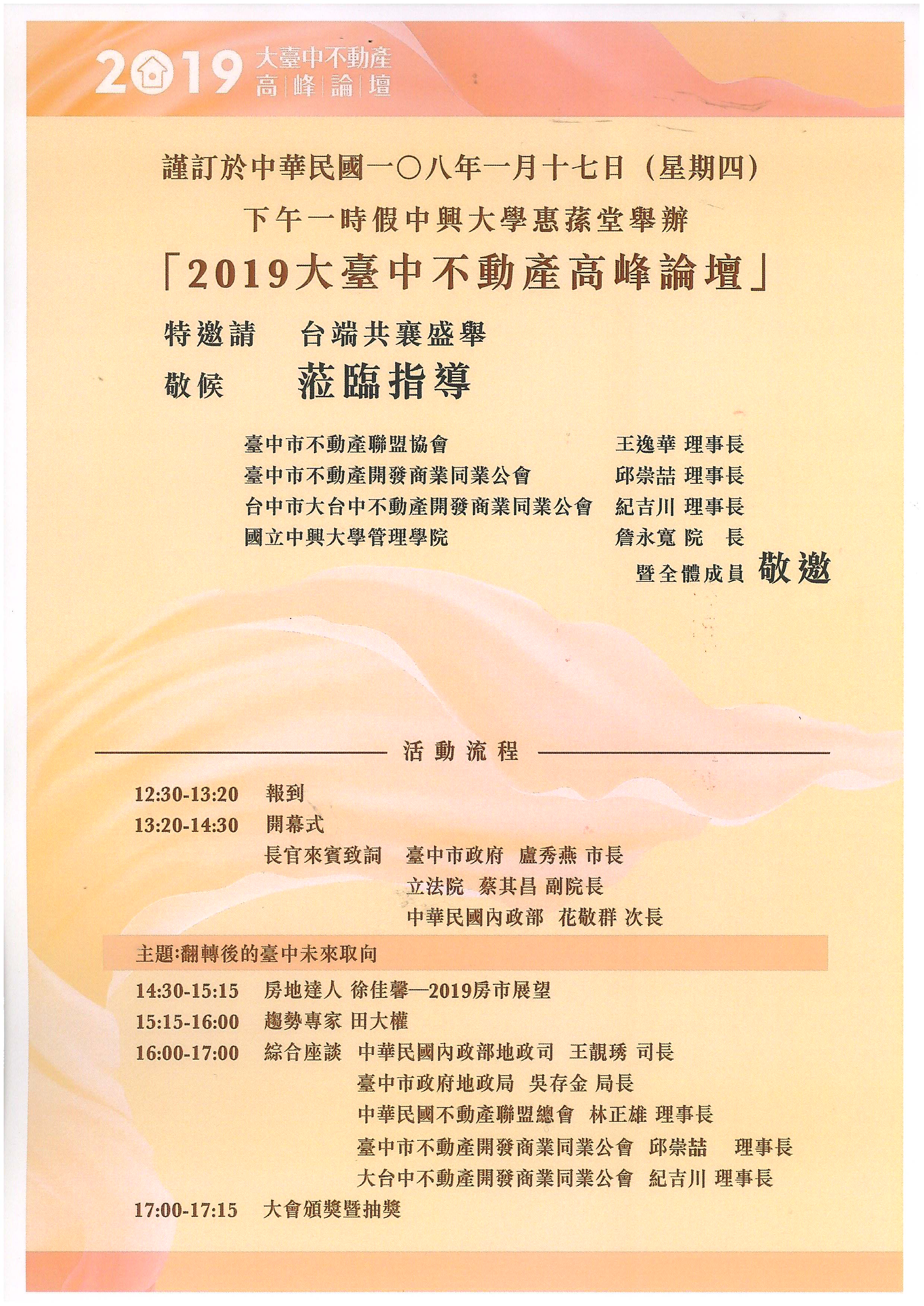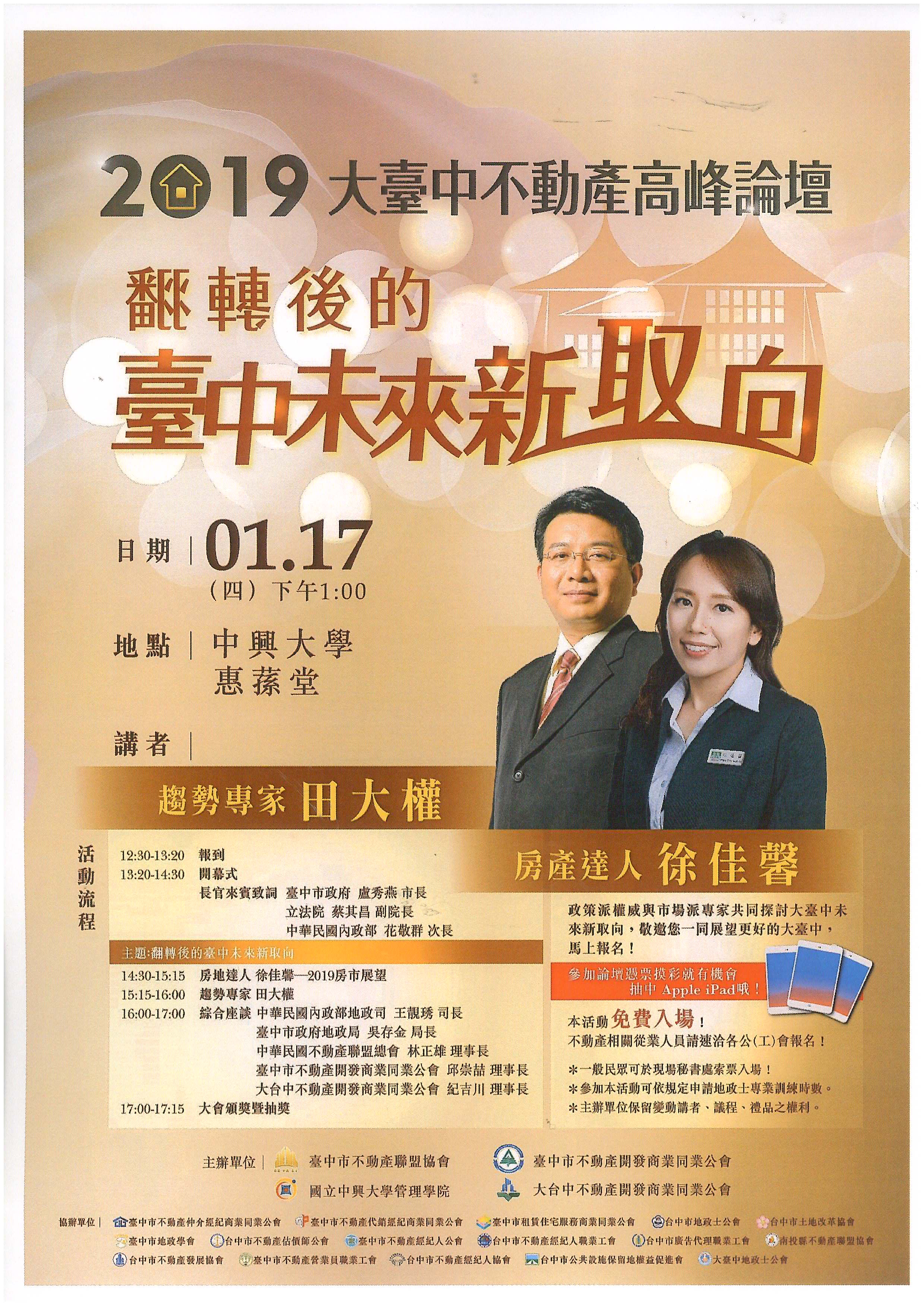 > 主辦2019大台中不動產高峰論壇(翻轉後的台中未來新取向)開放報名!!