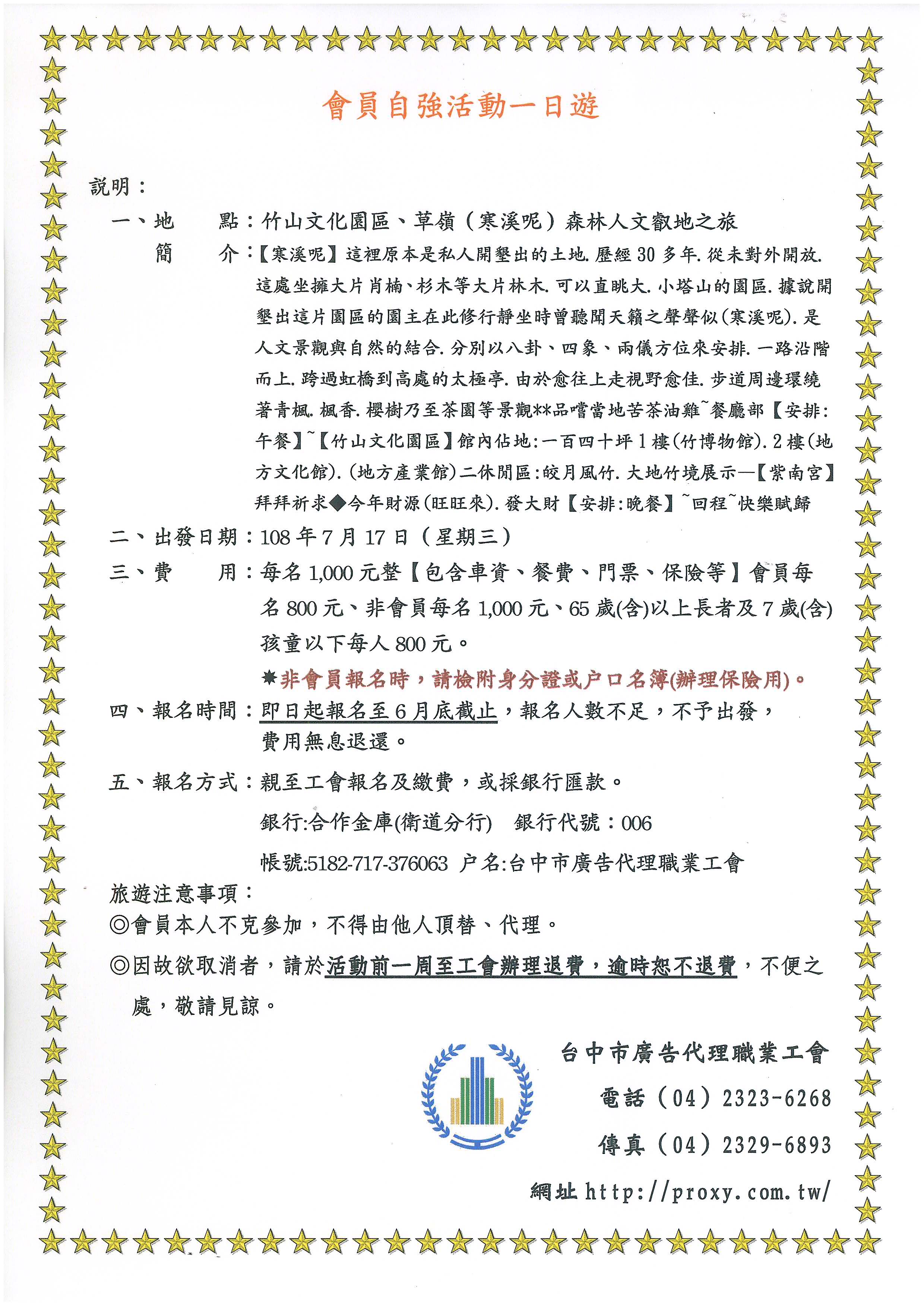 > 108年7月17日舉辦會員自強活動一日遊