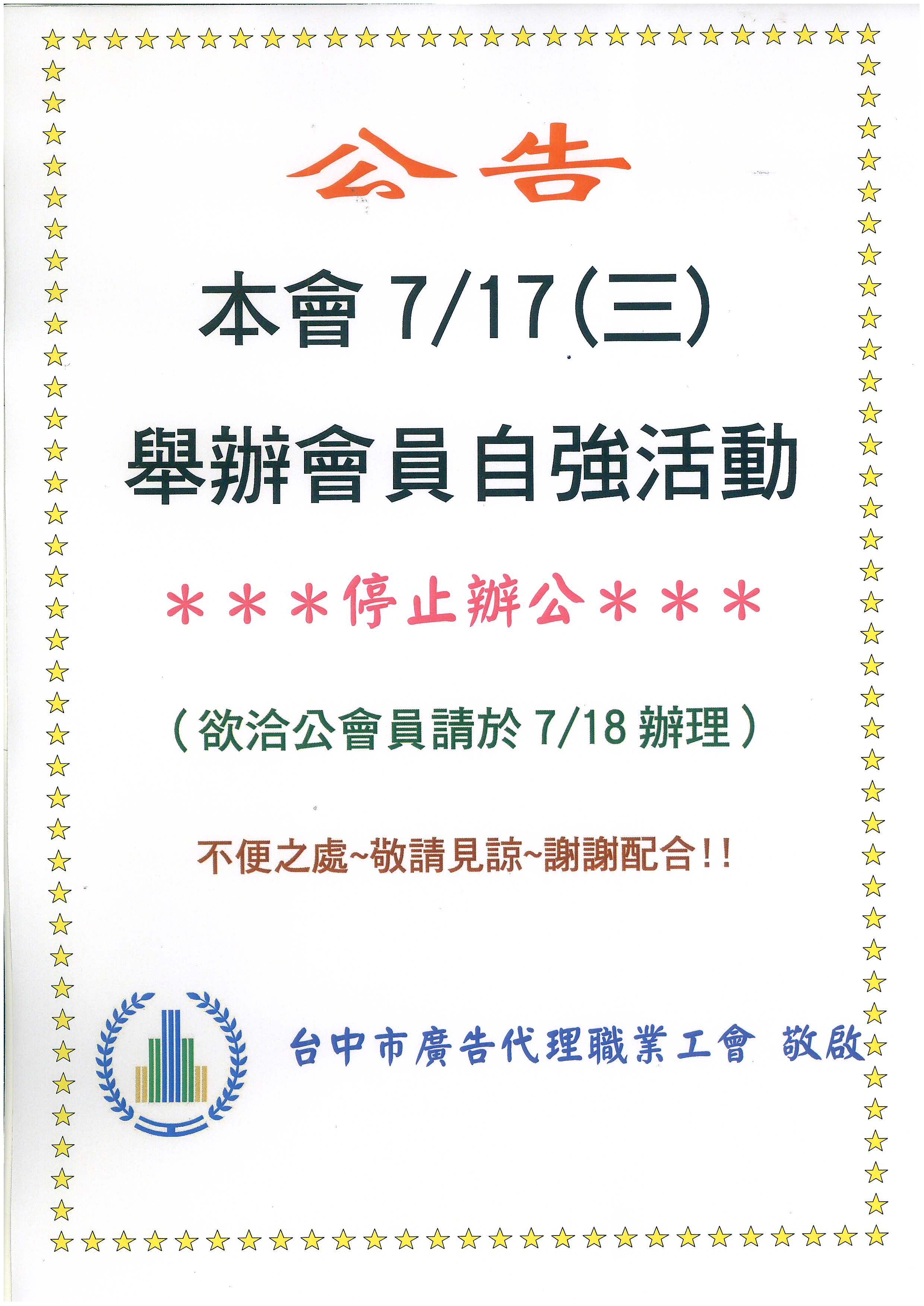 > 108年7月17日舉辦會員自強活動((停止上班))
