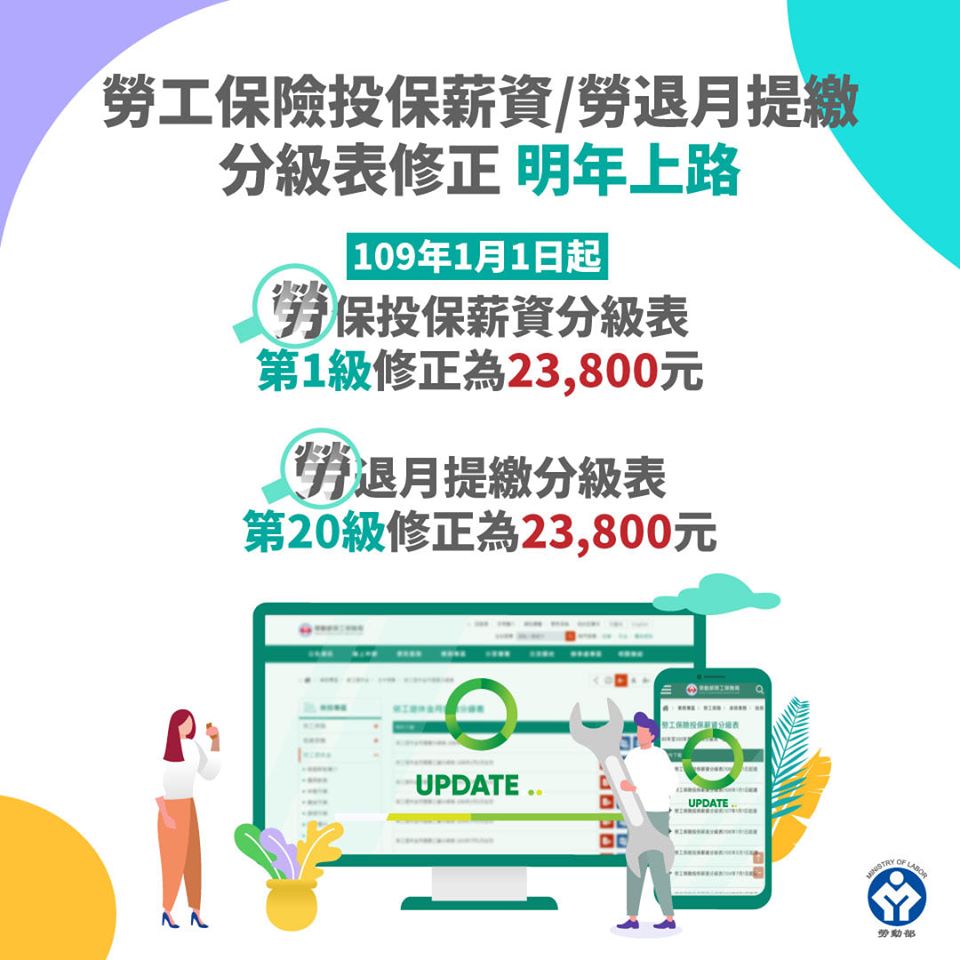 配合勞保局109年1月1日起基本工資調整為23,800元