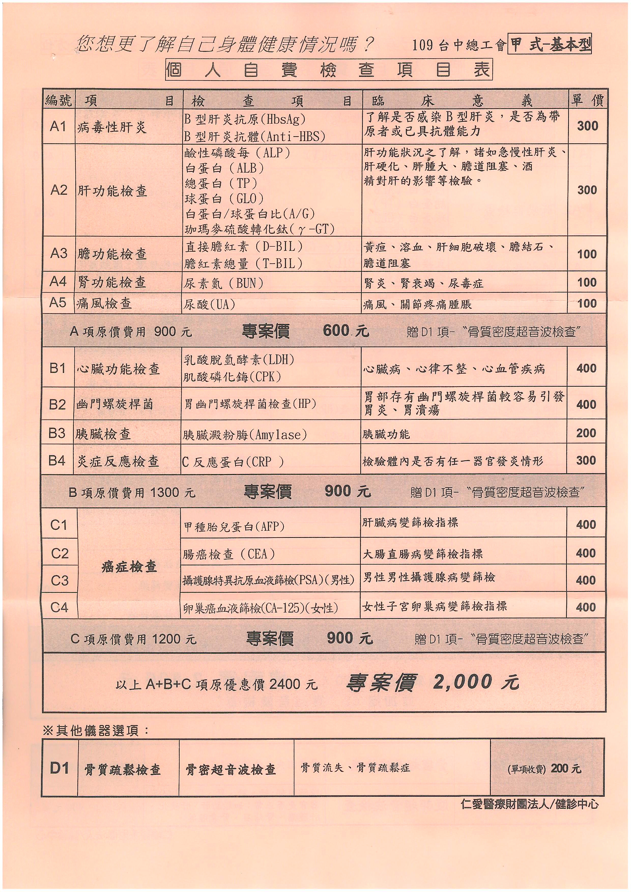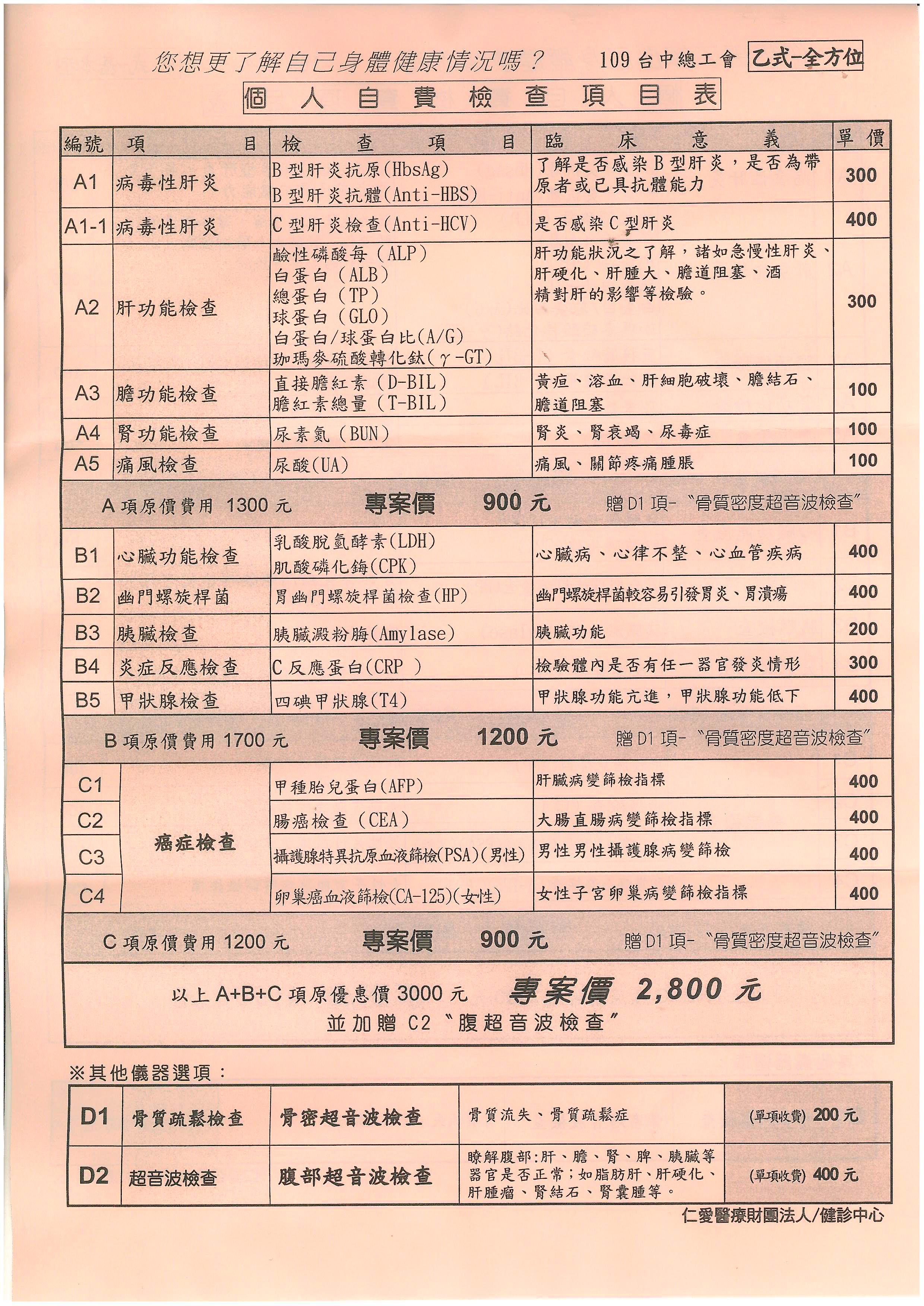 健檢合作醫院:仁愛醫療財團法人台中仁愛醫院