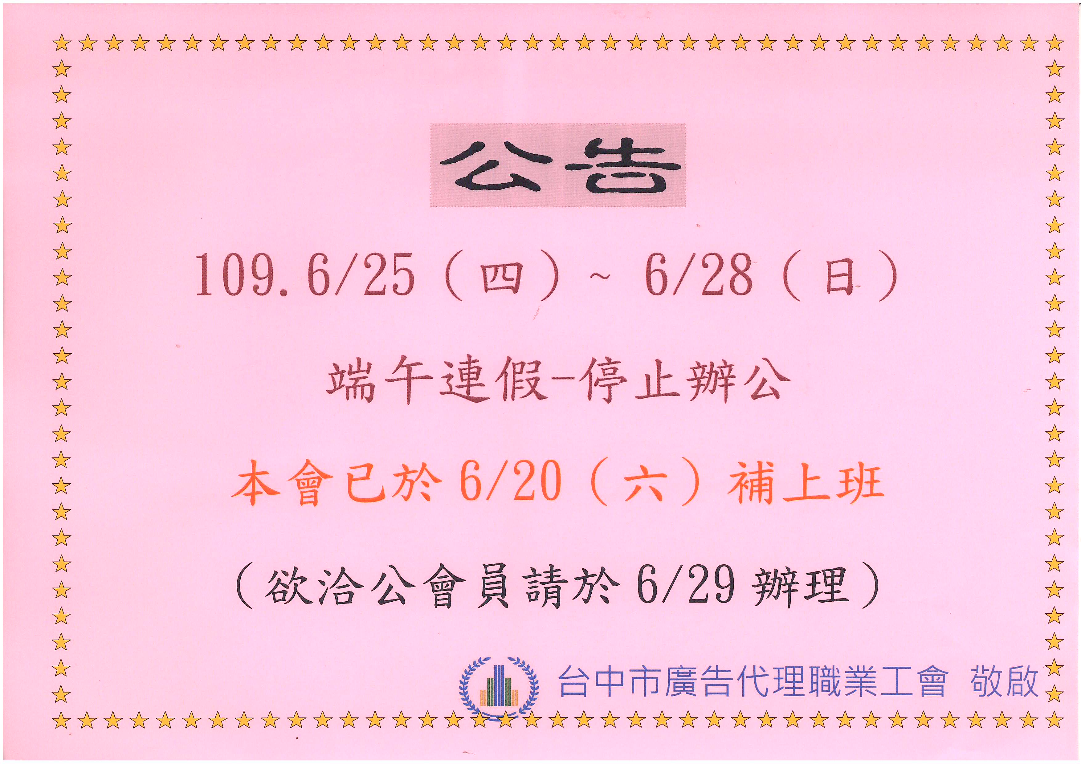 109年06月25日-06月28日端午節連假~工會停止上班!!
