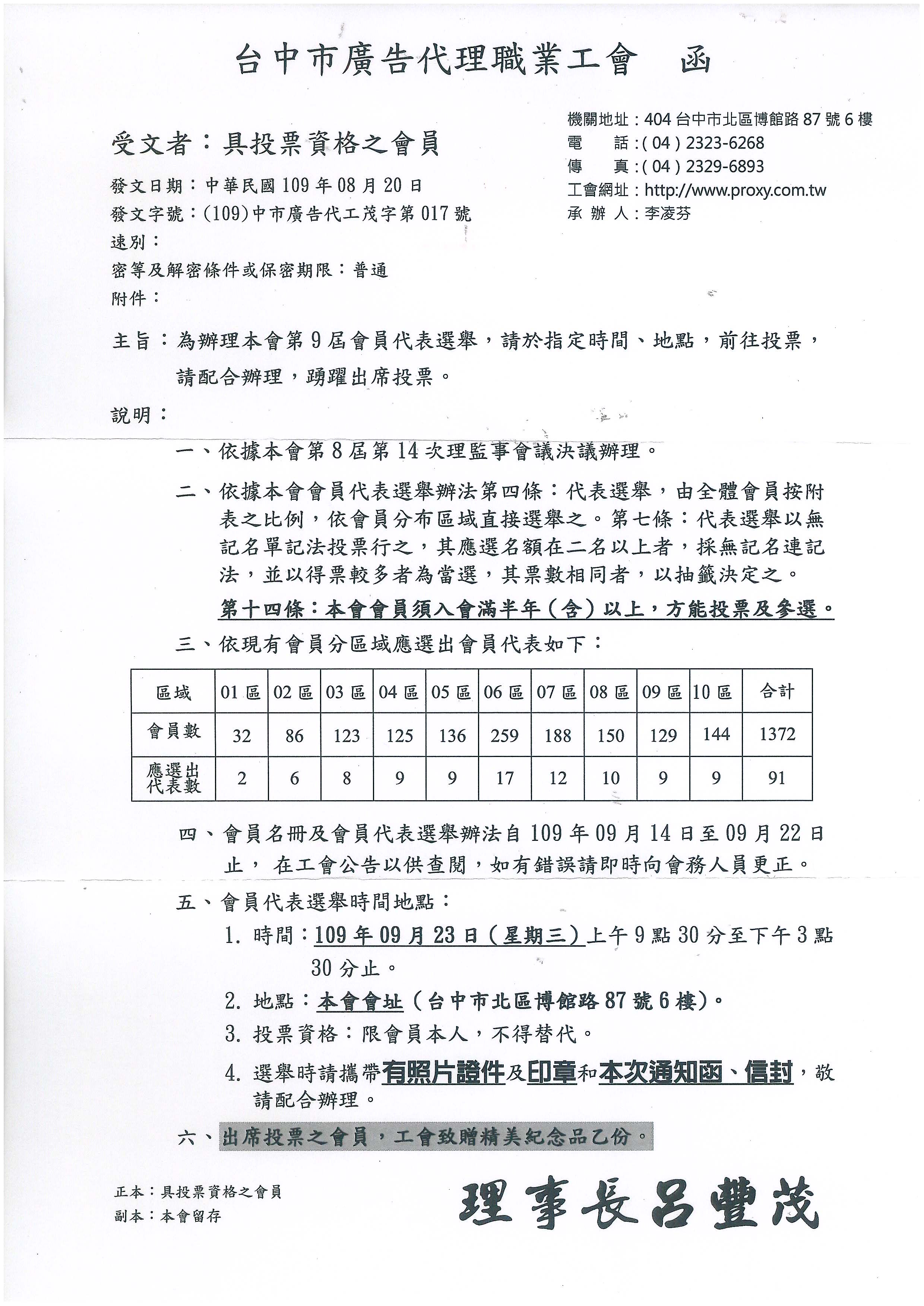 109.9.23辦理第9屆會員代表選舉.請符合投票資格會員們.踴躍出席投票!!