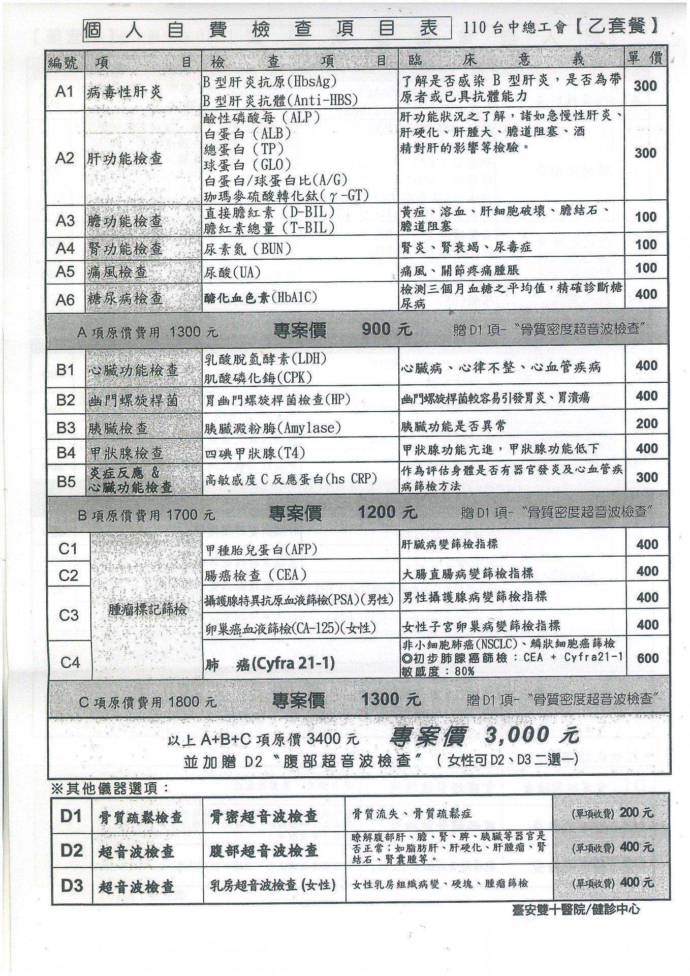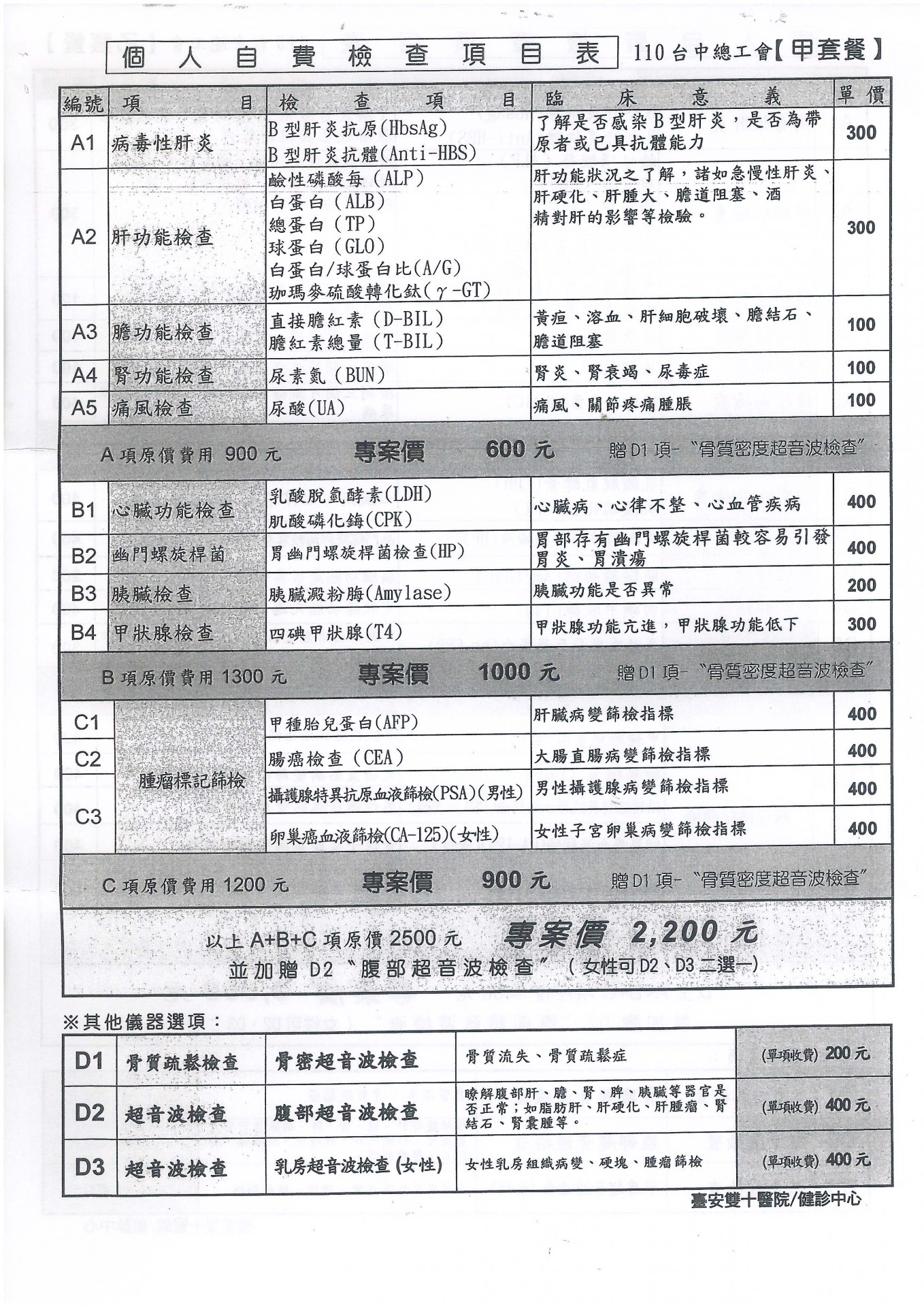 自費檢查項目表-1