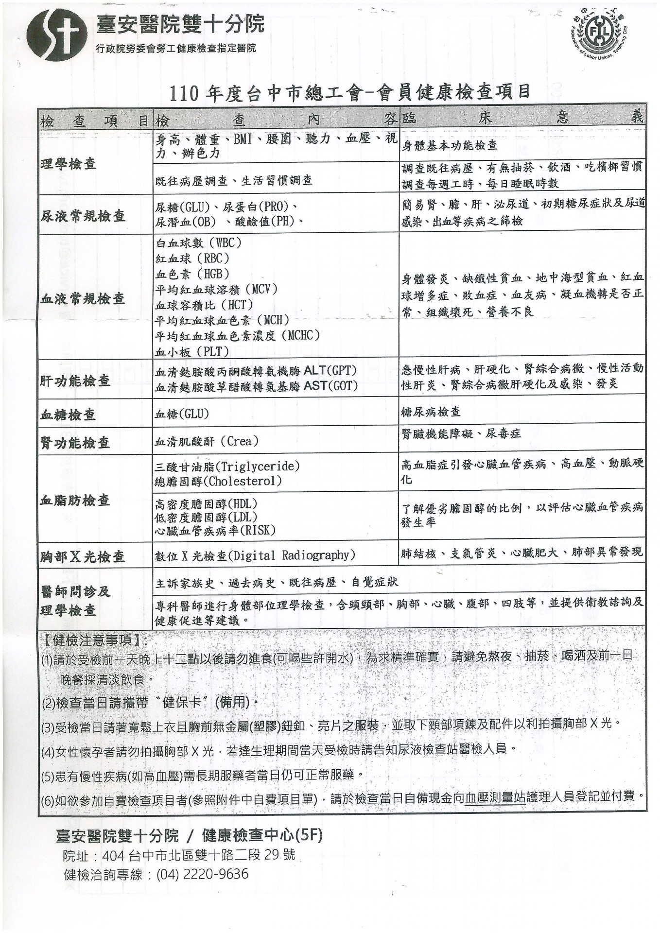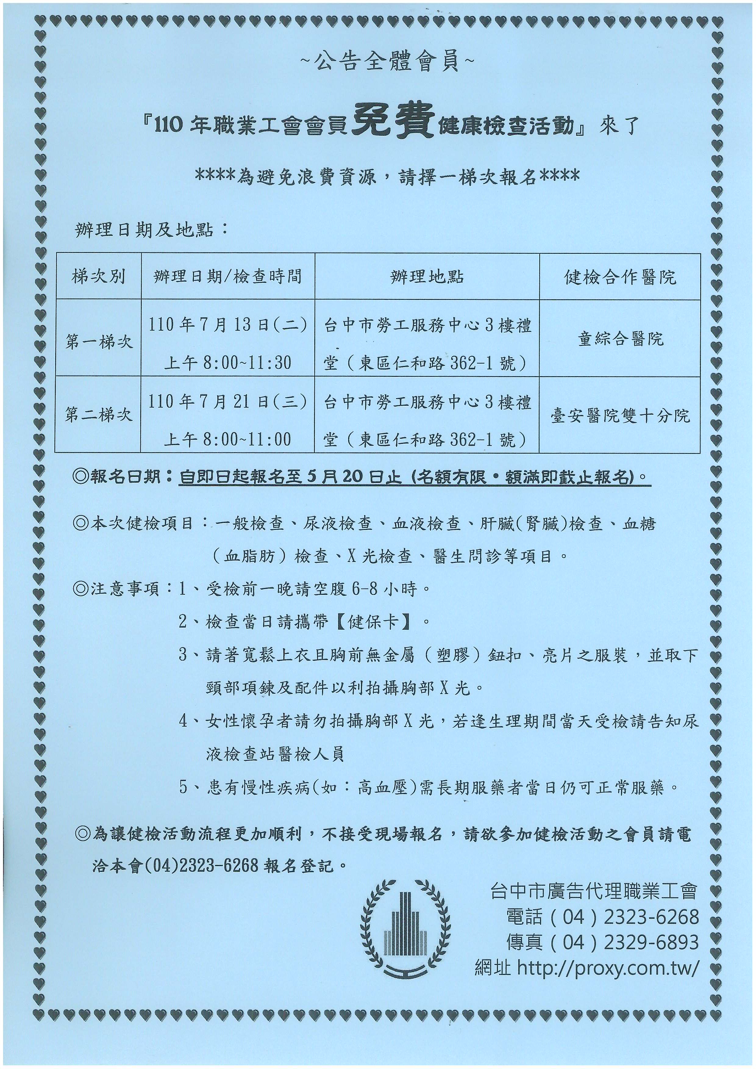 > 110年度職業工會會員免費健康檢查活動