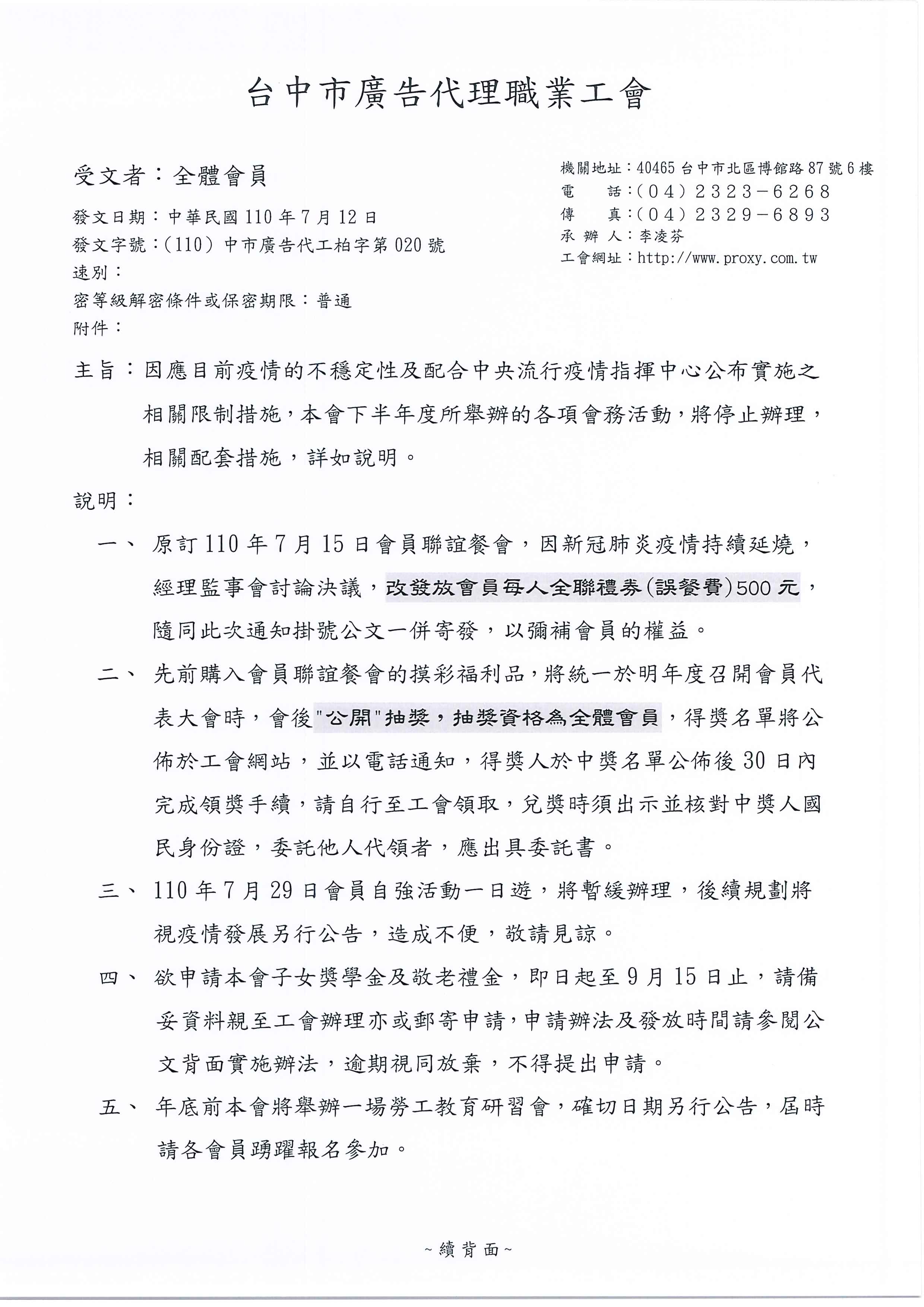 緊急公告:因應目前疫情不穩定性.下半年度舉辦的各項活動.配套措施說明~