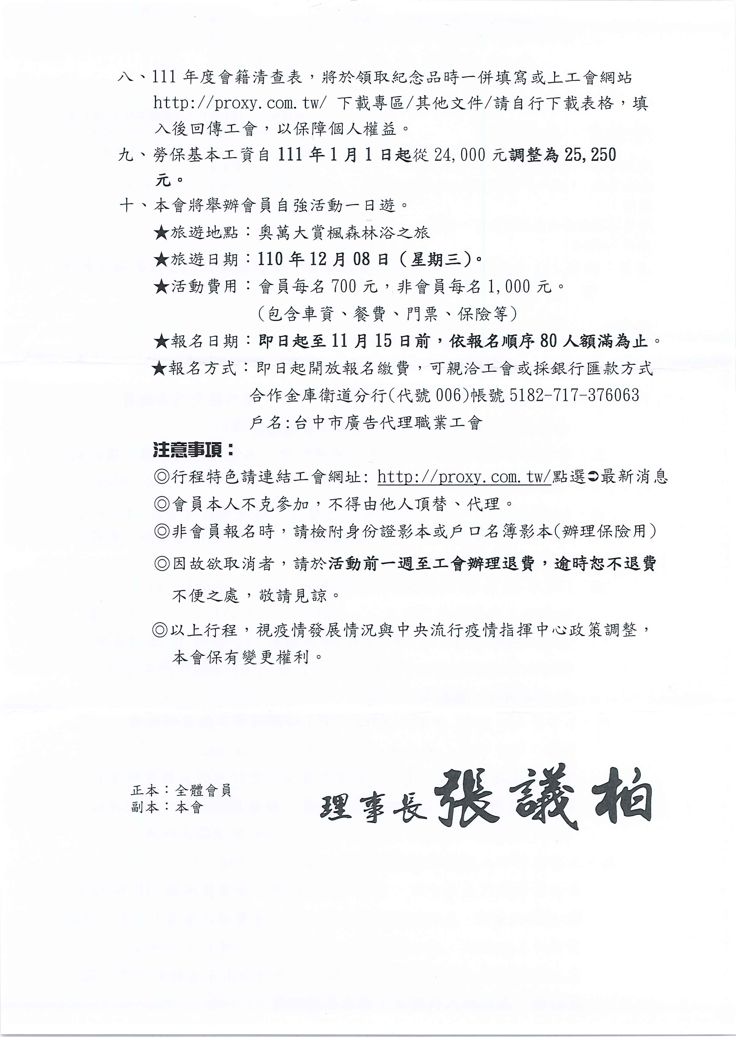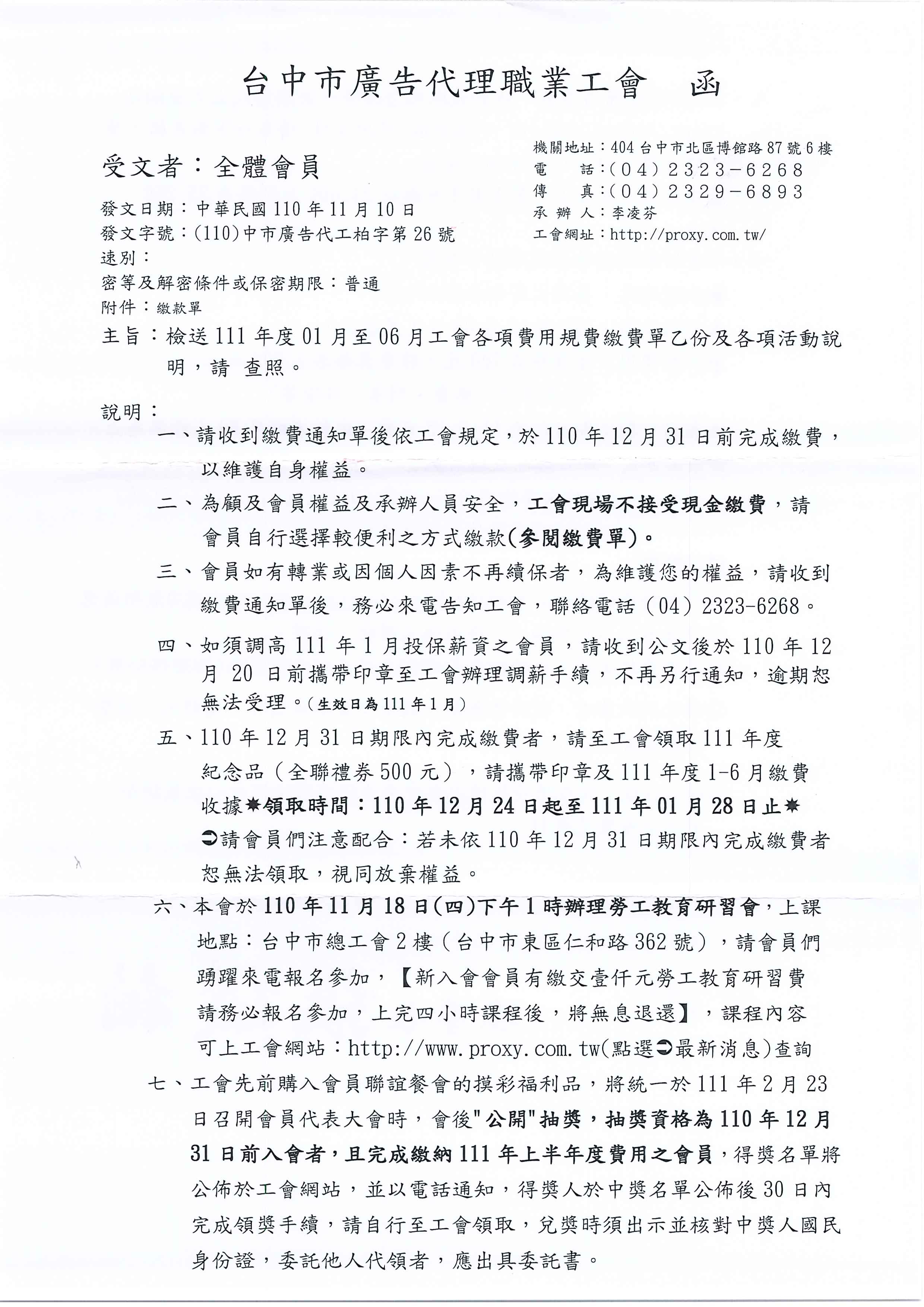 111年1-6月繳費通知及辦理各項活動公文已寄出,請會員們詳閱!!