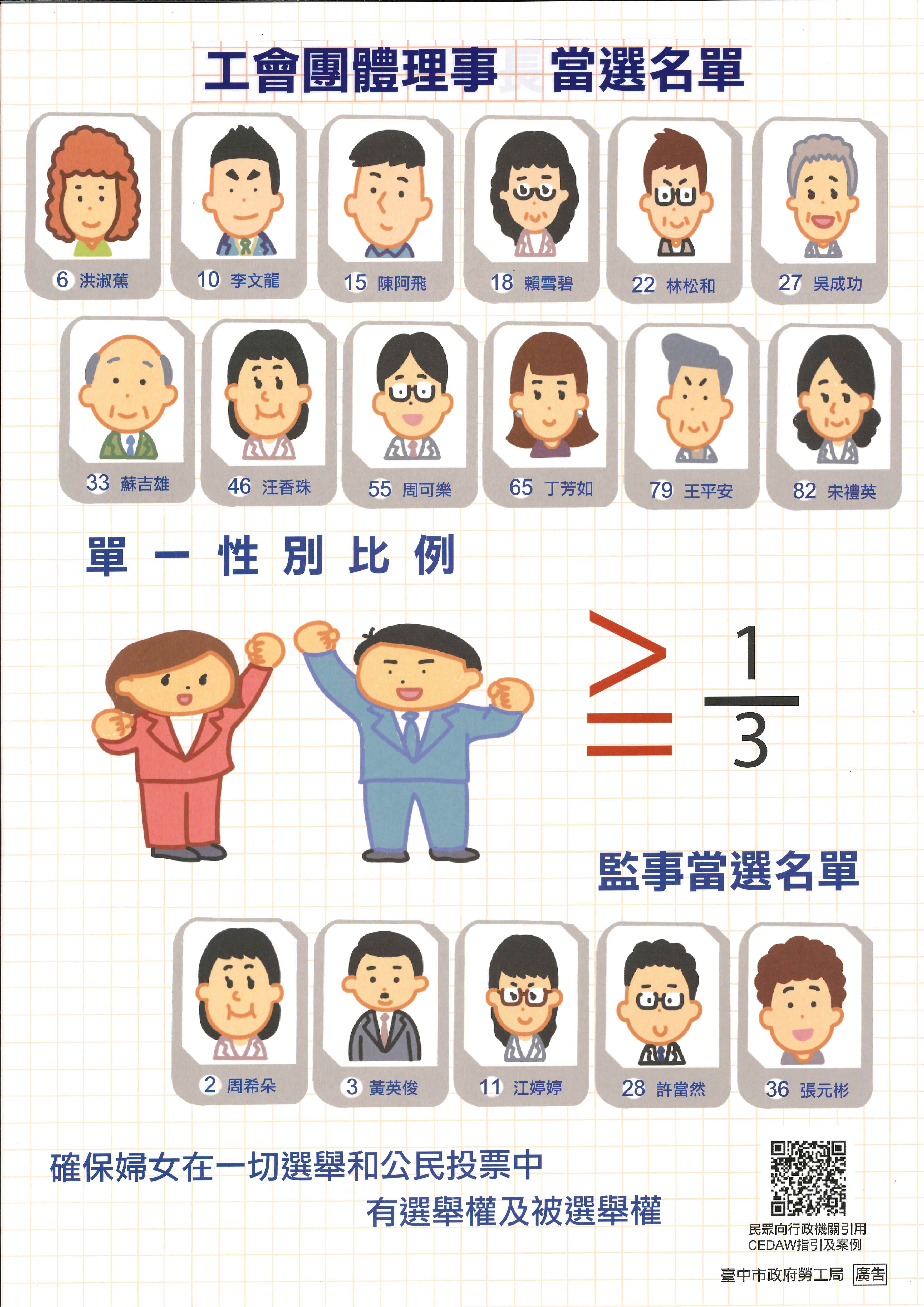 工會團體理監事當選名單(單一性別比例)宣傳海報