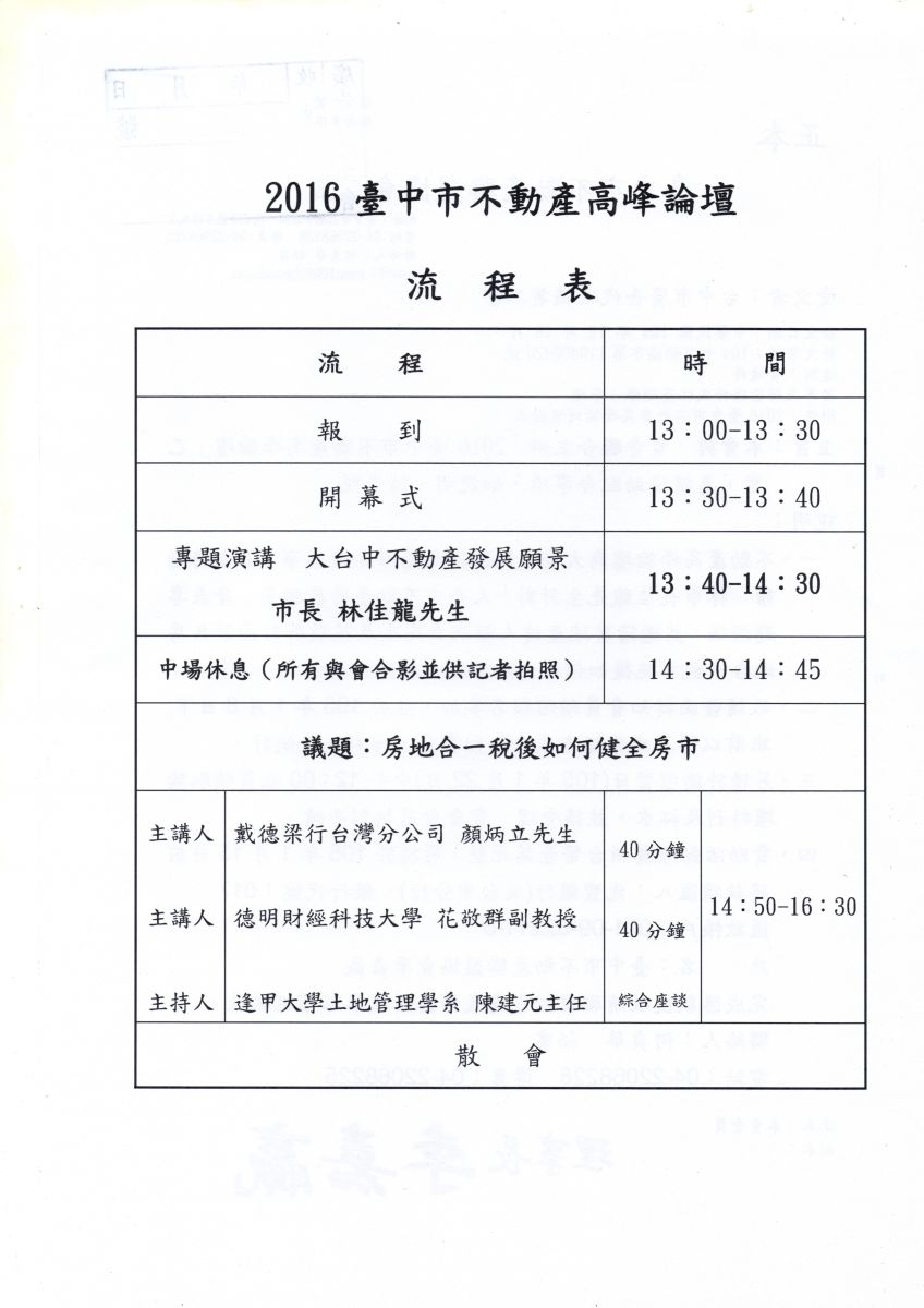> 2016臺中市不動產高峰論壇~敬請會員踴躍報名參加....