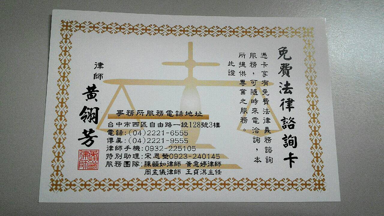 工會法律顧問黃翎芳律師,提供會員免費法律義務諮詢服務